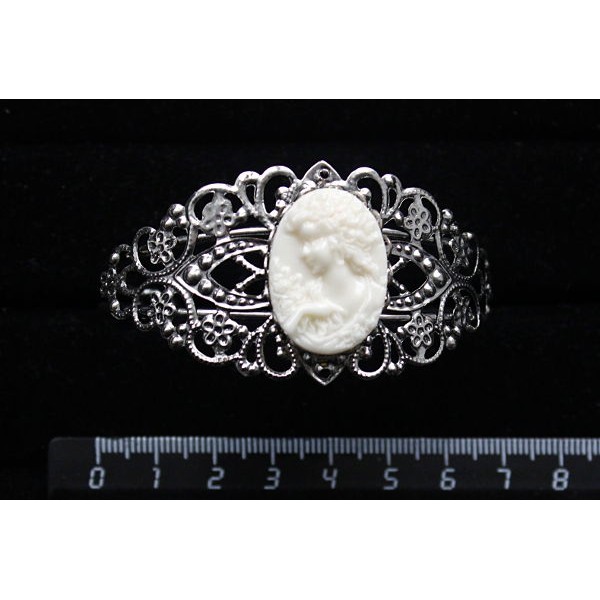 Браслет из крафтовой смолы, цвет белый, кабошон "камея", , цвет ант.серебро