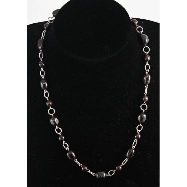 Бусы из сердолика (шарик 12) и агата черного (бочонок 18х13мм), на колечках, 46см + цепочка