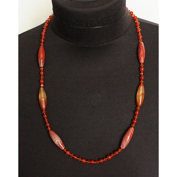 Бусы из сердолика, бочонок 30х1мм и шарик 6мм + хрусталь