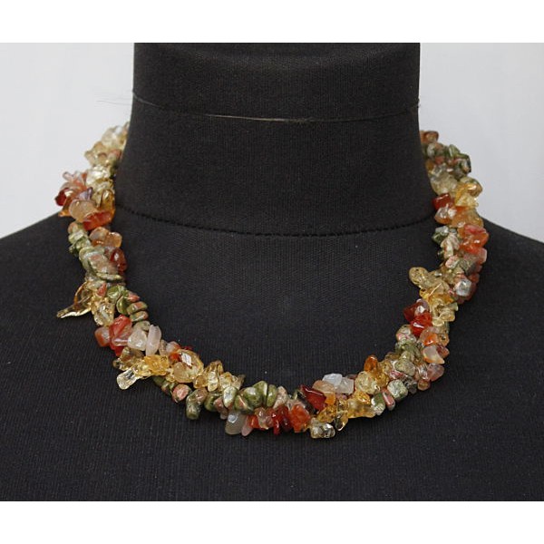 Бусы из сердолика, цитрина и унакита, галтовка, жгут 3 нити