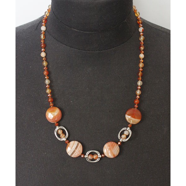 Колье из яшмы вишнево-желтой (галтовка) и агата..