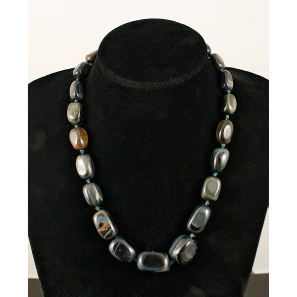 Колье из соколиного глаза, кубик заоваленный по возрастающей,50см