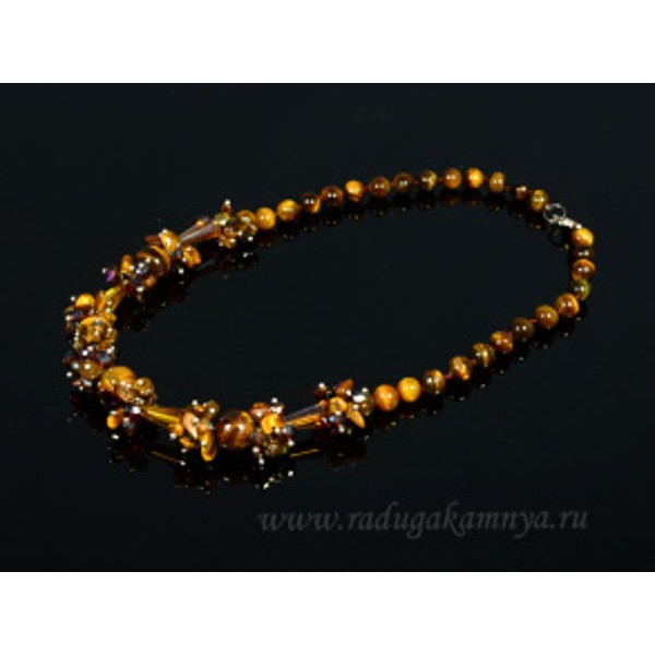 Колье с кисточкой из тигрового глаза на петельке, длина регулируется, шарики 8мм, 6мм и бисер