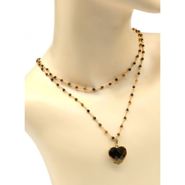 Бусы с подвеской "Сердце" из тигрового глаза, 88см