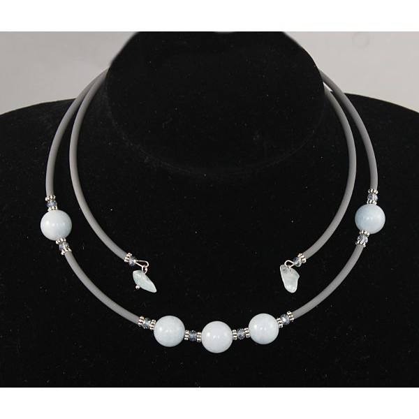 Колье из аквамарина (галтовка) и кварца тонированного (шарик) на струнке