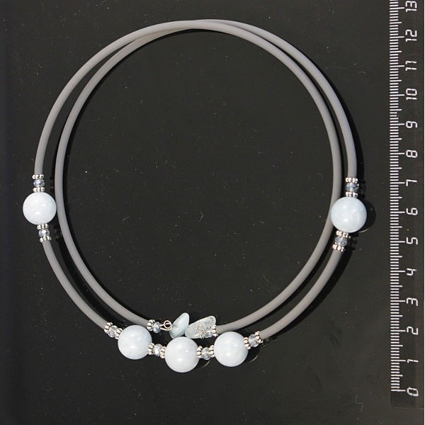 Колье на струнке из жемчуга белого и синего муранского стекла