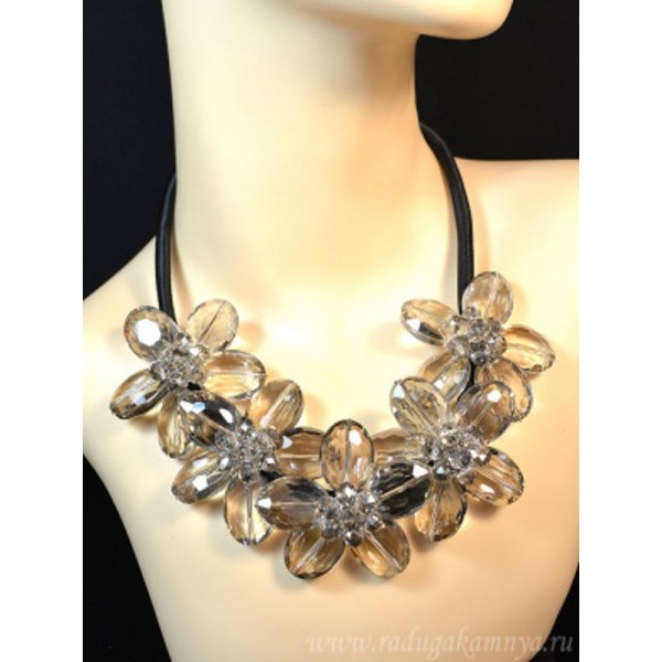 bu41-00189, bu41, bu41-, 41-, 41-00189, бусы_с_цирконами, 5_цветков, раухтопаз, бусы_раухтопаз