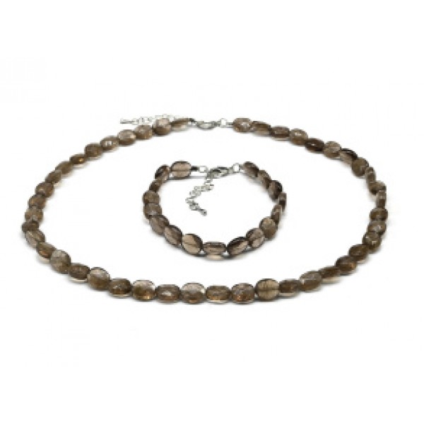 Бусы и браслет из раухтопаза овал гр.8*10мм, 45см, 18см