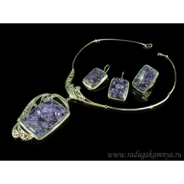 Колье, Кольцо и серьги флюорит, 48,5см