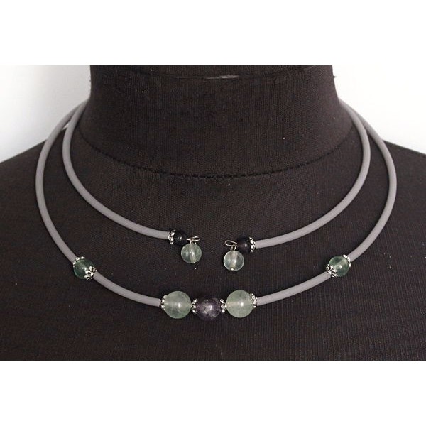 Колье из флюорита на струнке, шарики 10мм, 8мм и 6мм