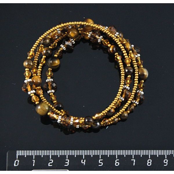 Браслет из тигрового глаза и коричневого хрусталя,..