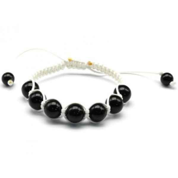 • Браслет шамбала с 7 шариками 12мм из янтаря черного, 16см