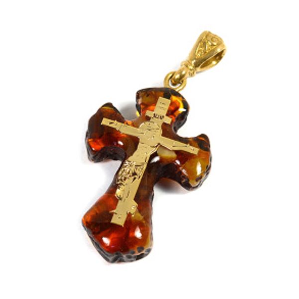 Кулон из янтаря крестик 21*31мм коньячный, гальваника цвет золото. (иск.)