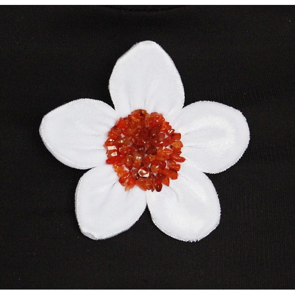 Брошь из сердолика и бархата "цветок", диаметр 9см