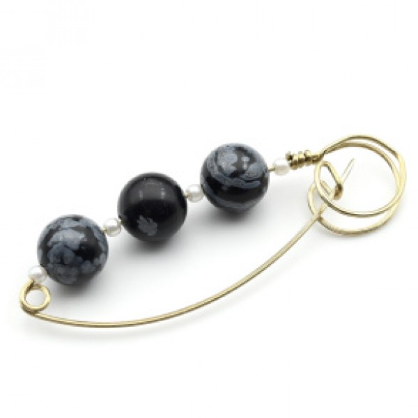 Брошь-булавка обсидиан 57*19мм.