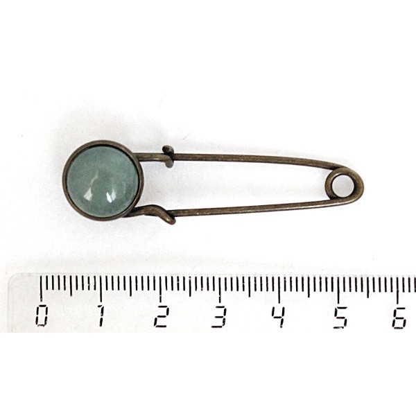 Брошь-булавка с авантюрином синим (синт.), круг 18мм, цвет бронза