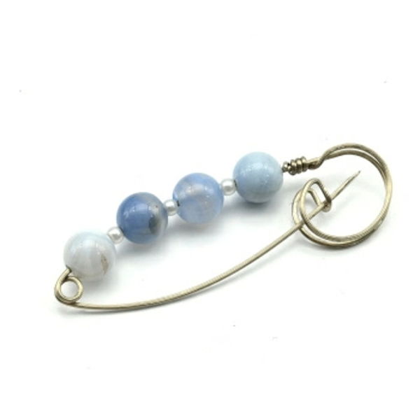 Брошь-булавка от сглаза с агатом голубым (сапфирин) 60*20мм.