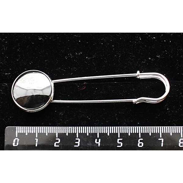 Основа для броши-булавки, 77мм, сеттинг круг 20мм, цвет св. серебро
