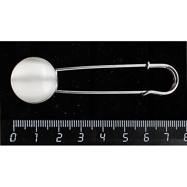 Брошь-булавка из кошачьего глаза (синт.), цвет белый, круг 20мм
