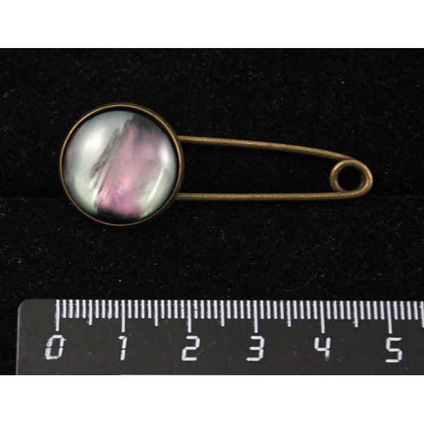 Брошь-булавка с опалом (синт.), круг 18мм, цвет бронза