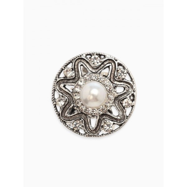 Зажим для платка "жемчужный круг", майорка, цвет белый+серебристый