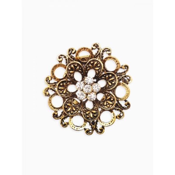 Зажим для платка "роза", стразы, цвет белый+золотистый