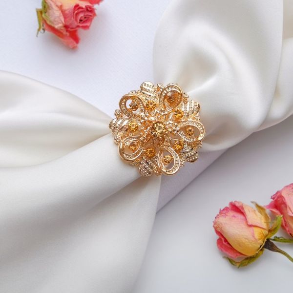 Кольцо для платка "Петли", цвет шампанского, цвет золотистый (стразы)