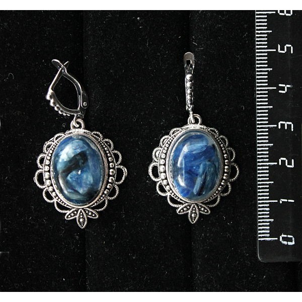 Cерьги из кианита (кабошон-мозаика) овал 18х13мм, оправа "трилистник", швензы посеребрение