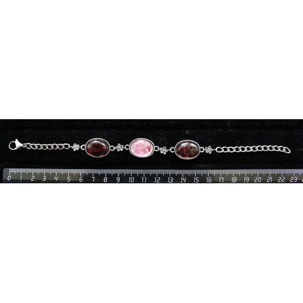 Браслет из турмалина розового и граната (кабошон-мозаика), овал 18х13мм, на цепочке