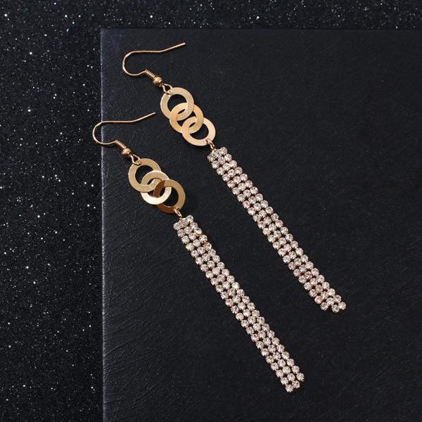 Серьги висячие со стразами "Вечерние" нить и кольцо, цвет белый, цвет золотистый