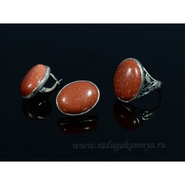 Кольцо и серьги с авантюрином (уткинит),*26мм