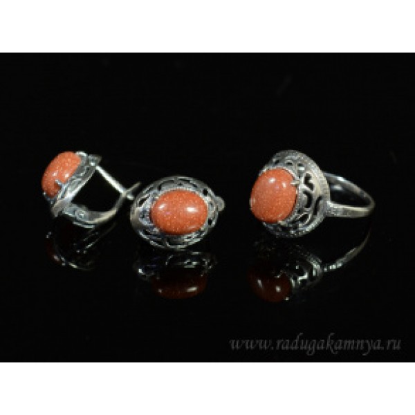 Кольцо и серьги с авантюрином (уткинит),*26мм
