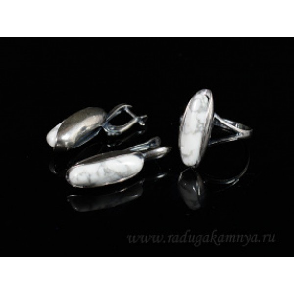 Кольцо и серьги с флюоритом и кахолонгом "Рыбки" 2..