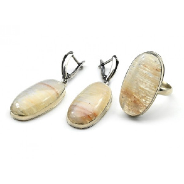 Кольцо и серьги беломорит " Овал "