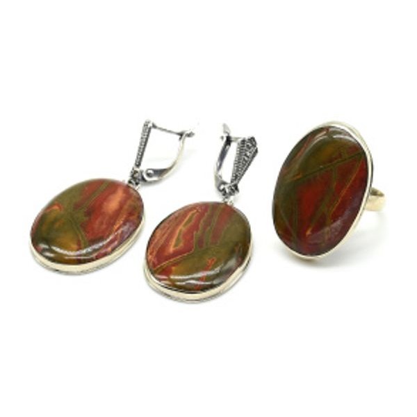 Кольцо из яшмы (гелиотроп), овал 18х13мм, безразме..