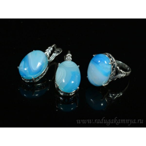 Кольцо и серьги с голубым агатом (имитация) ( сапф..