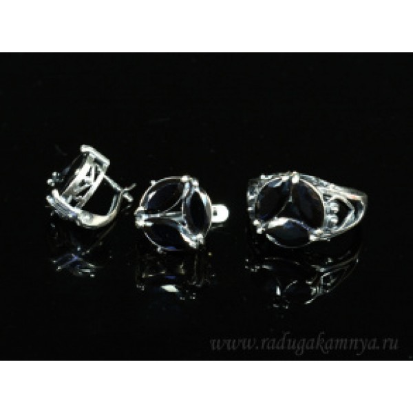 Кольцо и серьги циркон искусственный, цвет черный (иск.)