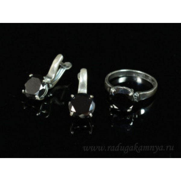 • Кольцо и серьги циркон искусственный, цвет черный (иск.)