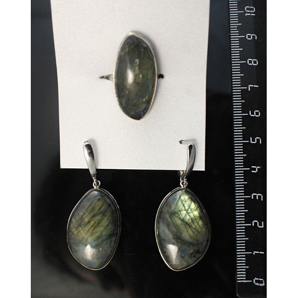 Кольцо и серьги из лабрадорита, листик 18х28 (13х28 кольцо), р-р 18-19