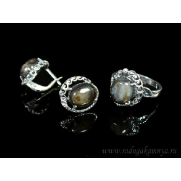 Кольцо и серьги с агатом