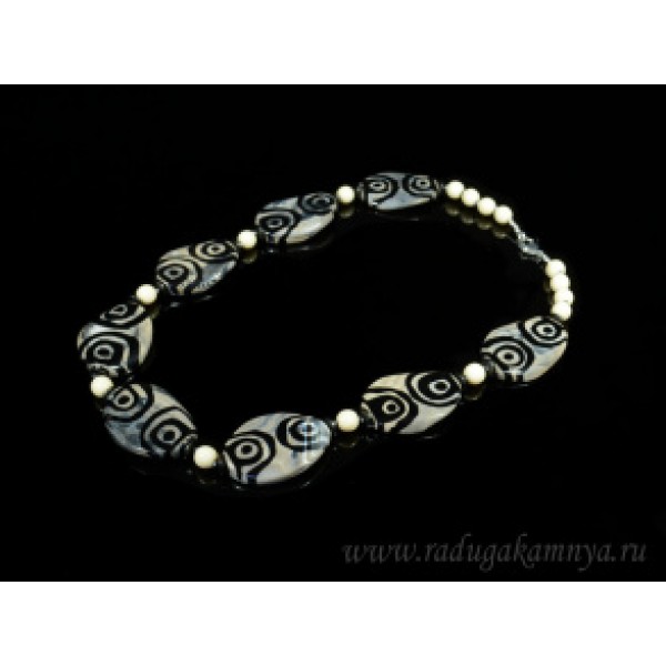 Бусы из агата тибетского овал 28*40мм, шарик 8мм цвет черно-белый, 53см.