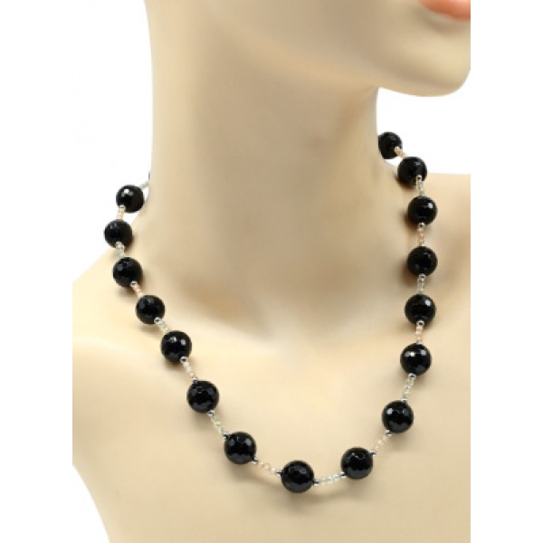 • Бусы из агата шарик гр.11-14мм с фианитами, 47см.