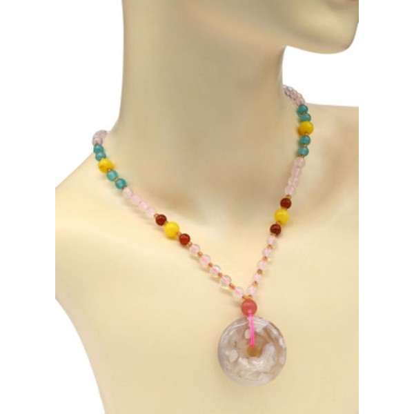 Бусы из розового кварца шарик 6мм с подвеской из агата Сакура, 58см