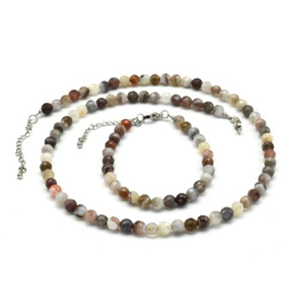 Бусы с браслетом шарик гр.6мм из агата бразильского, 48см