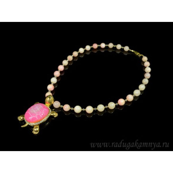 Бусы с подвеской Черепашка в желтом металле из агата тонир.розовый, 50см
