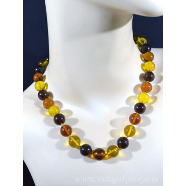 Бусы из янтаря шарик 12мм лимонный, св.коньячный, коньячный, 47см