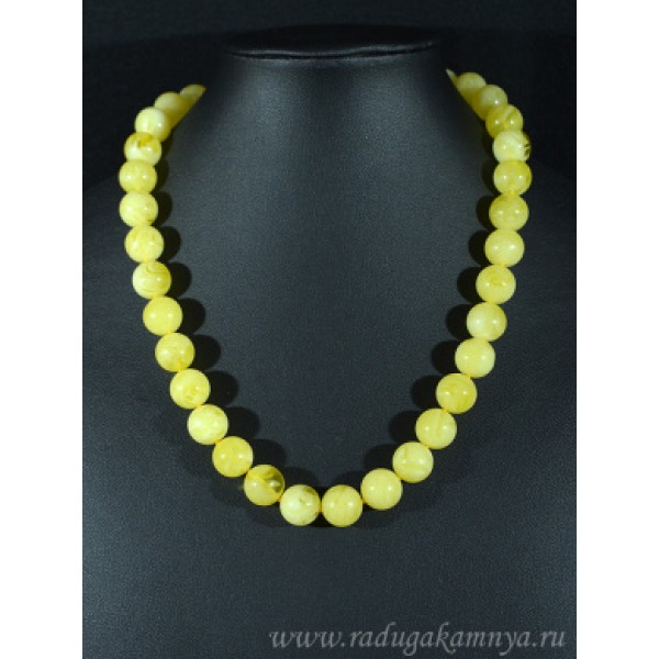 Бусы из янтаря шарик 12мм молочный, 46см
