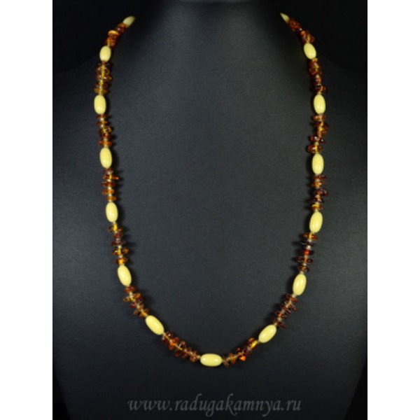 Бусы янтарные овал, крошка молочный, коньячный, 55см