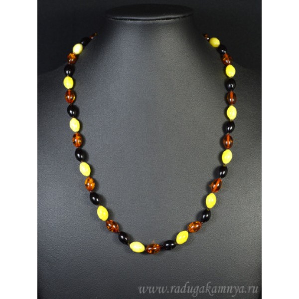 Бусы янтарные рис 7*11мм молочный, св.коньячный, вишня, 54см