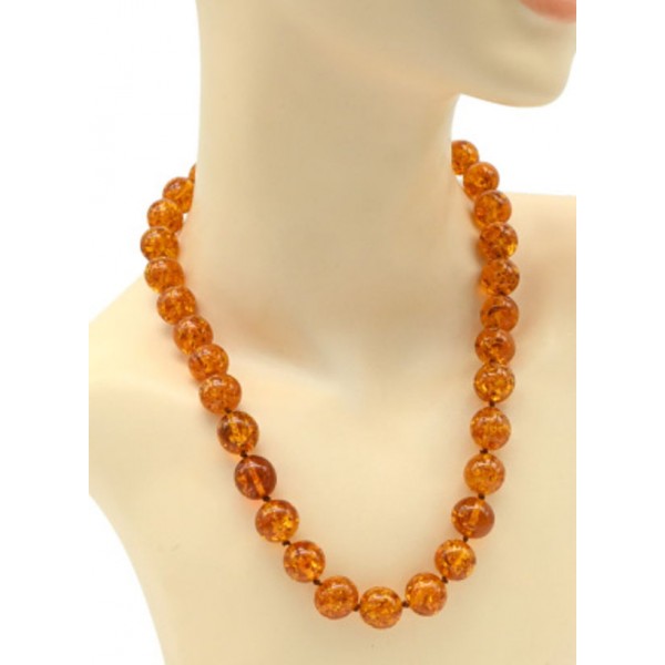 • Бусы из янтаря шарик 13,5-14мм цвет коньячный, 52см (иск.)